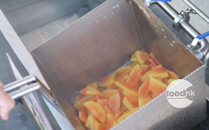 Đu đủ được chần để giữ được màu sắc và độ giòn